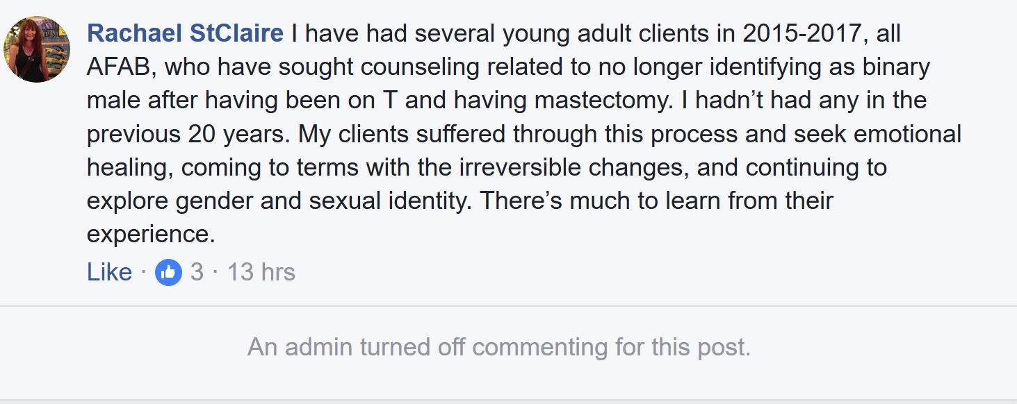 WPATH jan 5 2018 detrans therapist Published February 25, 2018 at 1463 × 582 in WPATH & The Advocate aim to suppress new research on adolescent gender dysphoria